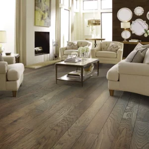 Rustic hardwood flooring: Features natural color variation and graining for a distinctive, time-worn look.